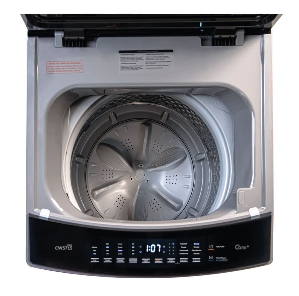 Lavadora Challenger automática de carga superior de 15 Kg (33 Lb) – CW 5715 DG. Lavadora automática de 15 Kg (33 libras) de capacidad, con sistema inteligente de lavado One Touch, incorpora nueva función anti-tangle assitant que ayuda a desenredar la ropa.