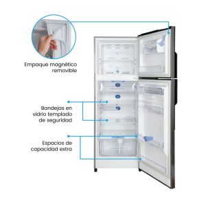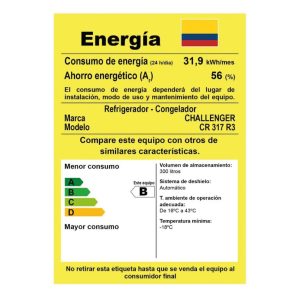 Nevera No Frost Challenger 317 Litros Brutos panel digital Lúmina – CR 317. Nevera No Frost de la nueva línea de neveras challenger lúmina, de 317 Litros Brutos con panel digital de clase tropical de bajo ruido y de bajo consumo energetico, incorpora un sistema multiflujo el cual realiza una distrubición constante y uniforme de la temperatura para matener los alimentos mas frescos con descongelación automática, cuenta con refrigerante R600a que conlleva a una mayor eficiencia energética y reduce el riesgo del impacto sobre el calentamiento global y el daño a la capa de ozono. Incluye un novedoso Smart Pocket en el compartimiento de frutas y verduras pensado para alimentos iniciados.
